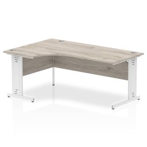 Impulse 1800mm Left Crescent Office Desk Grey Oak Top White Cable Managed Leg