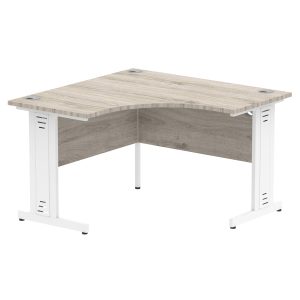 Impulse 1200mm Corner Office Desk Grey Oak Top White Cable Managed Leg
