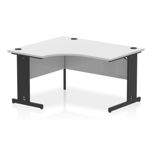 Impulse 1400mm Left Crescent Office Desk White Top Black Cable Managed Leg