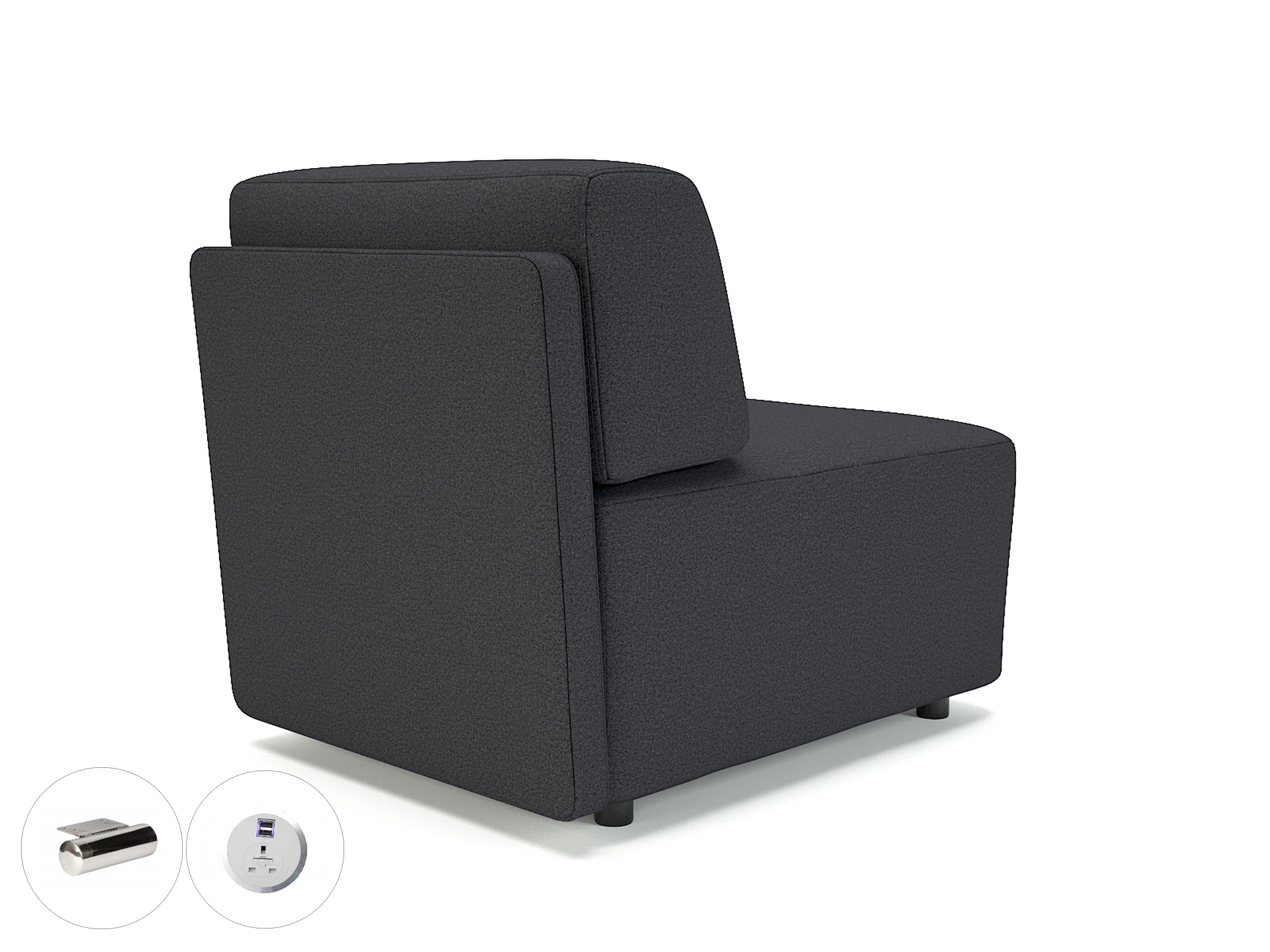 Flexible modern seating system  Simple push-lock connectors stop units drifting  Units can be moved to various configurations  Seams double stitched for strength and neatness  Hardwood frame from sustainable source  Reflex memory foams  HD webbing suspension