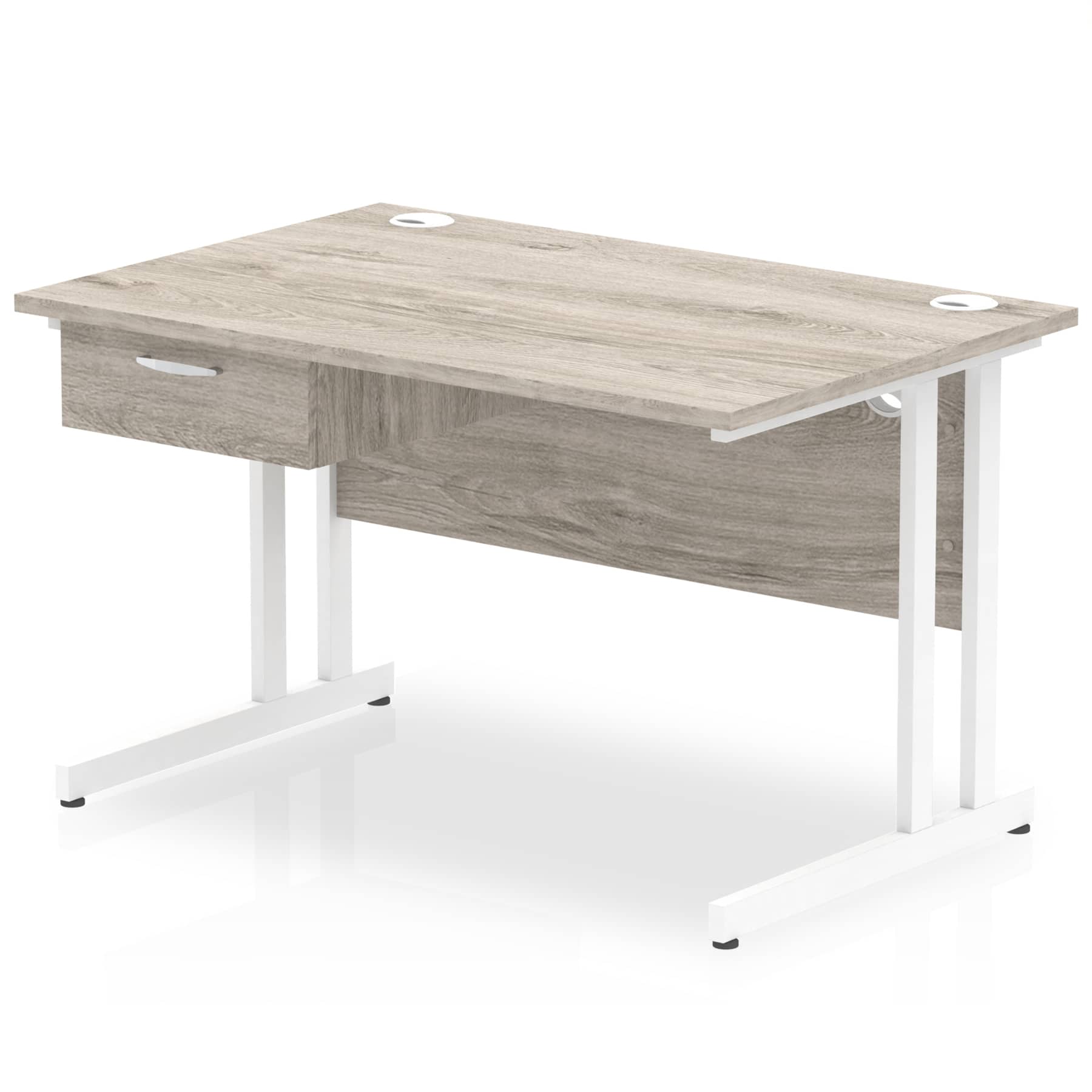 Impulse 1200 x 800mm Straight Office Desk Grey Oak Top White Cantilever Leg Workstation 1 x 1 Drawer Fixed Pedestal