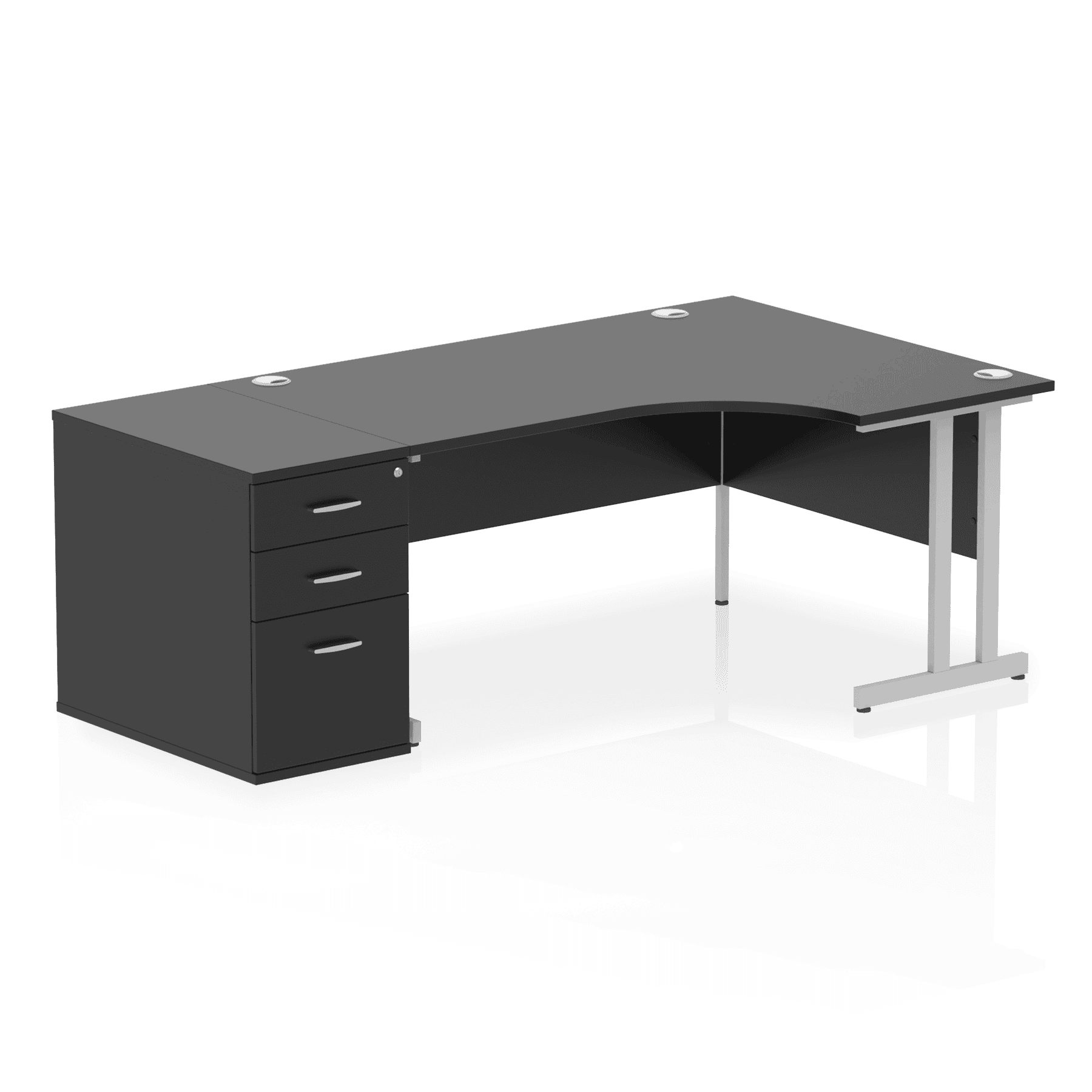 Impulse 1600mm Right Crescent Office Desk Black Top Silver Cantilever Leg Workstation 800 Deep Desk High Pedestal