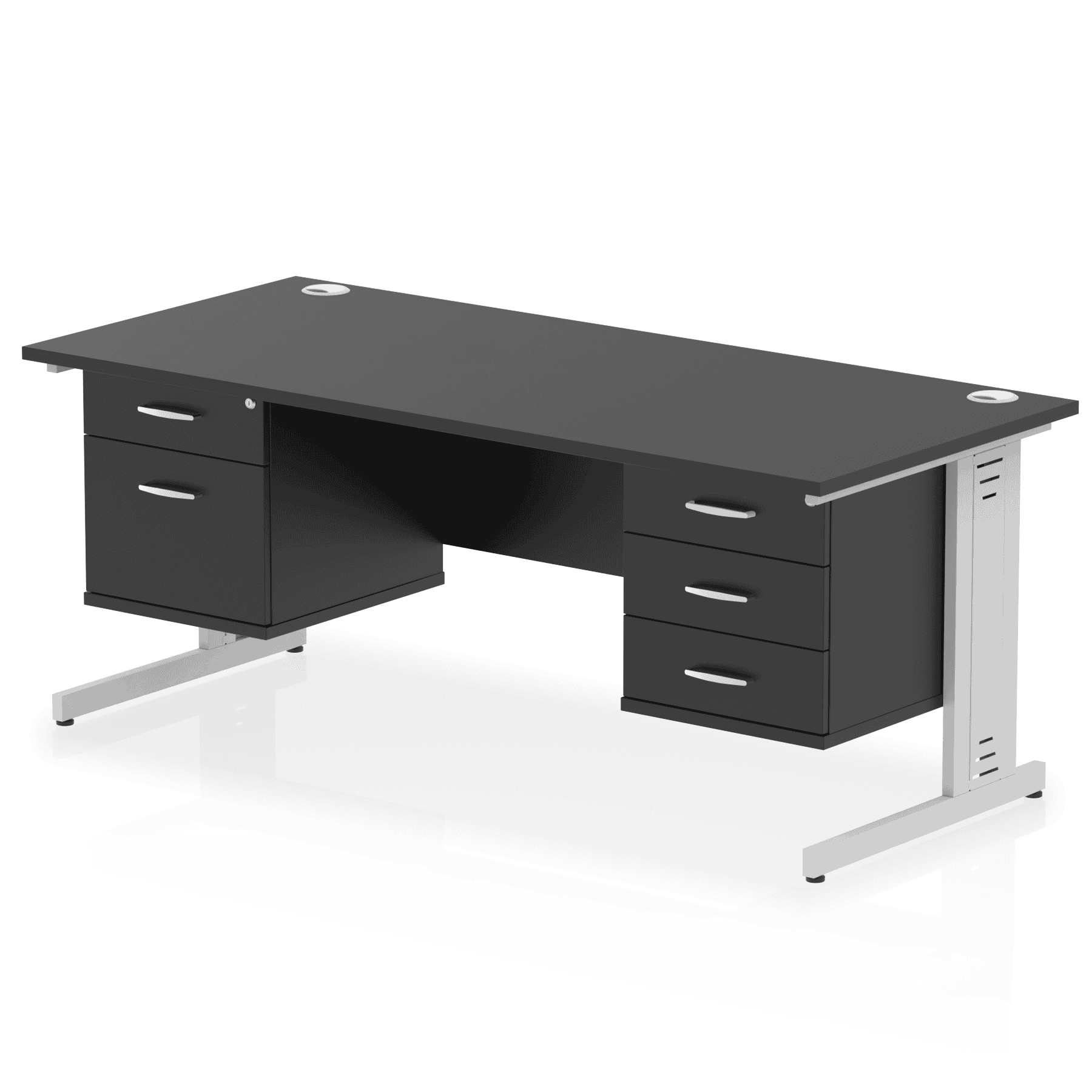 Impulse 1800 x 800mm Straight Office Desk Black Top Silver Cable Managed Leg Workstation 1 x 2 Drawer 1 x 3 Drawer Fixed Pedestal